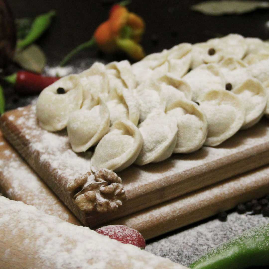 Siberian Dumplings – traditional homemade-style dumplings made from premium beef and pork, wrapped in delicate dough. The juicy filling is seasoned with onion, herbs, and black pepper, creating a perfect balance of flavor. Ideal for a hearty lunch or cozy family dinner.